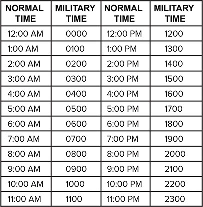 The ship works on military time.